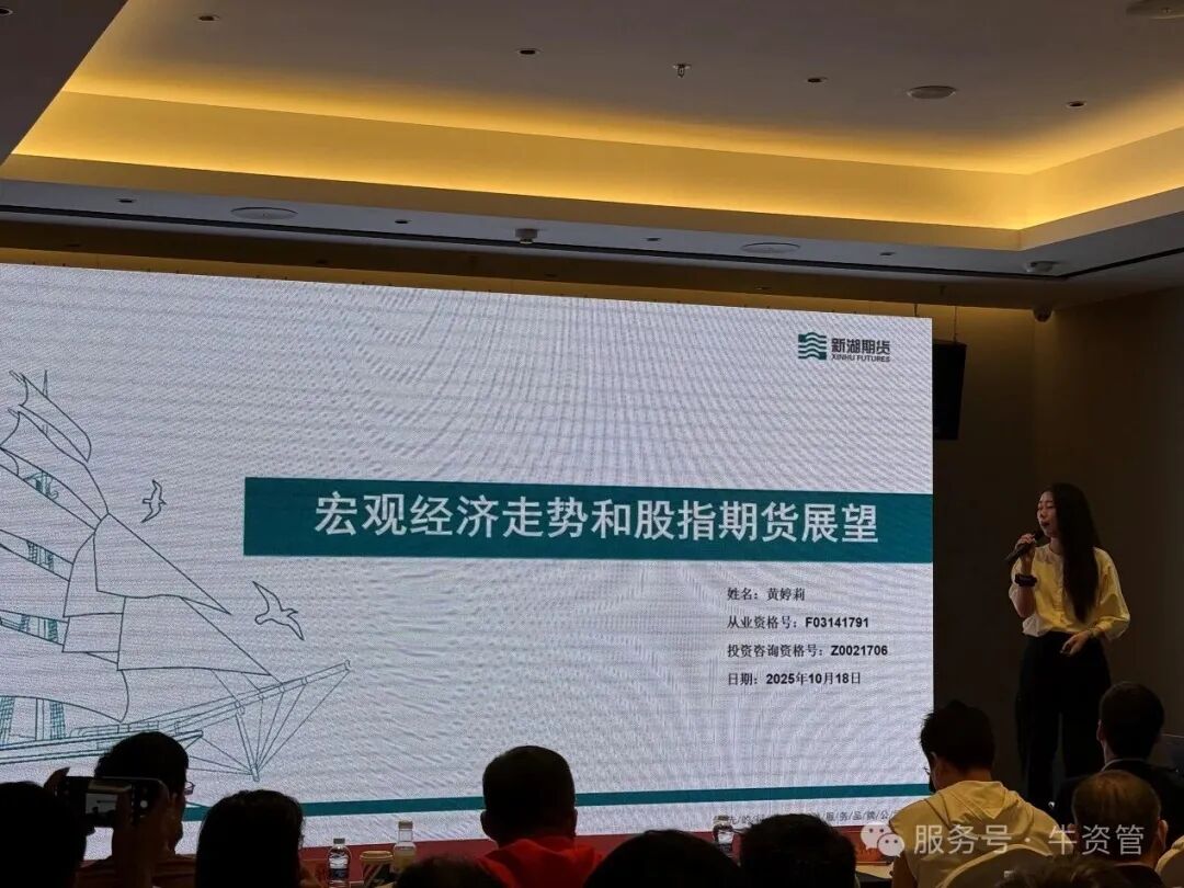 新湖期货宏观金融研究员黄婷莉展开《宏观经济走势和股指期货展望》的主题分享。黄老师认为今年年初以来,大类资产定价主线在于全球秩序的重构,政策不确定性+相较非美经济在增长/科技的优势收敛,动摇美国资产的全球定价锚地位,而美元信用的弱化也支撑贵金属、科技股、新兴市场资产表现。尽管市场逐步消化对等关税的影响,但全球秩序重构的底层逻辑不可逆转,中美贸易战略相持但尾部风险抬升。从中美宏观经济和政策来看,美国就业风险打开联储降息空间,年内大概率将还有2次降息,预防性降息有望支撑经济软着陆。但联储内部的分歧显著加大,且特朗普政府对美联储独立性冲击下,也带来了未来货币政策路径的不确定性。美国财政扩张的极大惯性也不改美元周期下行逻辑。而中国强预期和弱现实持续分化,政策底线支撑风险资产底部抬升,随着三季度以来需求端压力进一步显现、以及外部扰动的加大,逆周期调节政策处在进一步发力窗口,关注10月下旬几个重要的会议时点。从资产配置的角度看,秩序重构的背景之下,全球正在进入财政主导的新时代,并有望迎来货币配合的双扩张格局,将利好全球股票,尤其是国内和新兴市场股票,以及有色贵金属等供给稀缺商品的表现。